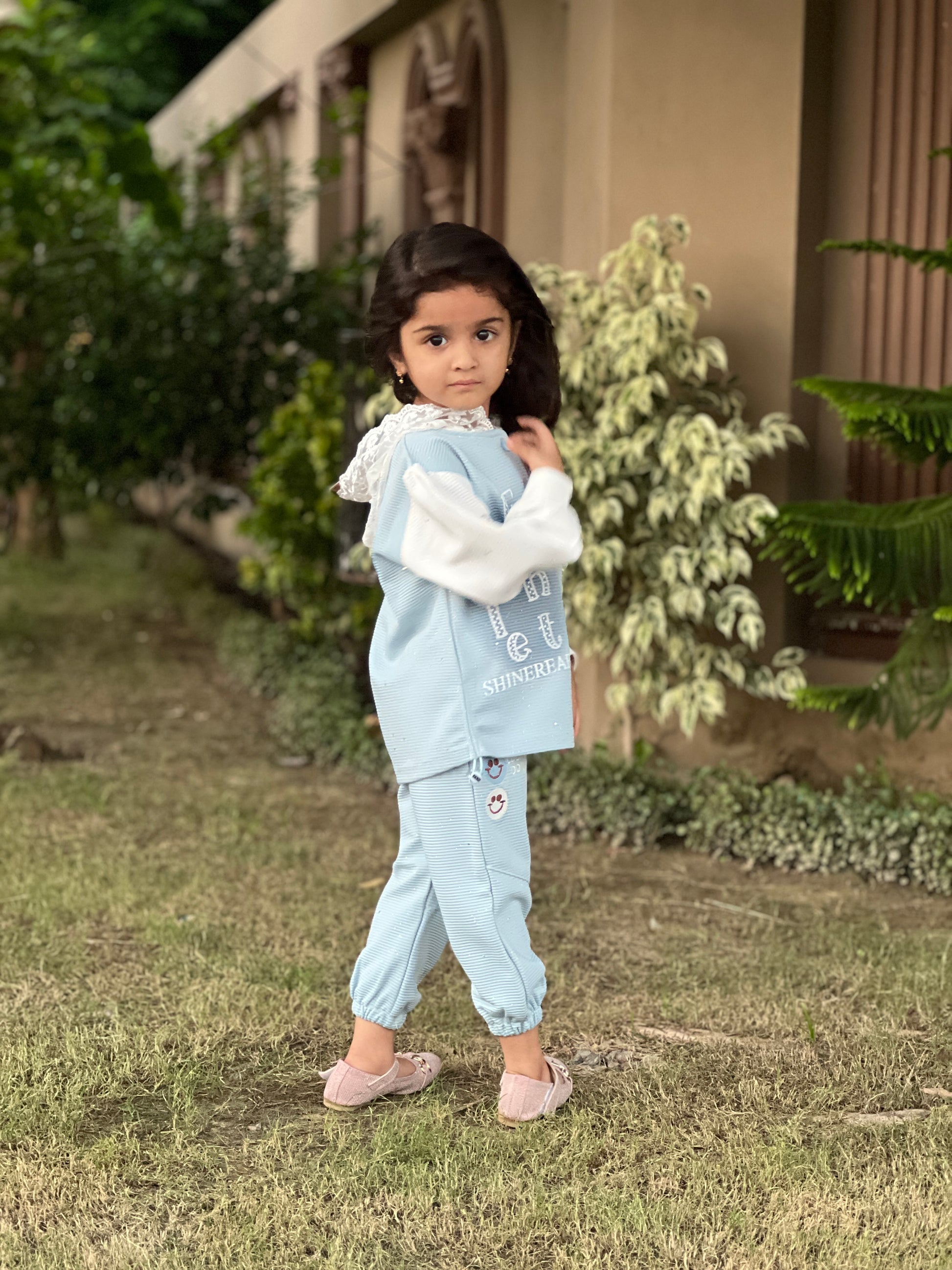 Give your little one the perfect blend of comfort and style with our Mini Chic Set. Crafted from soft, breathable fabric, this two-piece outfit is designed for everyday wear—whether it’s playtime, a casual outing, or family gatherings. The pastel blue and white combination with trendy detailing makes it a must-have for every kid’s wardrobe.